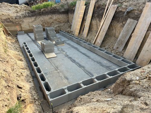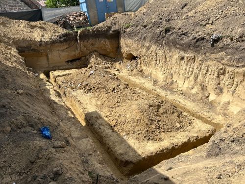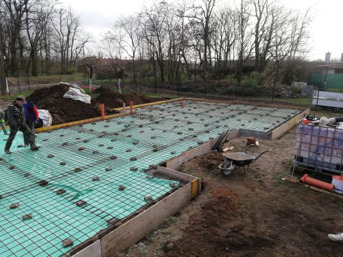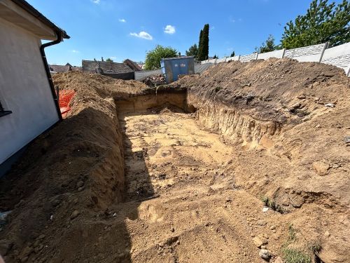Aktuálně probíhá výstavba specifického zahradního objektu, částečně zapuštěného do země. Stavba plní nejen estetickou, ale i technickou funkci – slouží zároveň jako opěrná stěna proti svahu. Práce probíhají podle plánu, referenční fotografie budeme průběžně doplňovat podle postupu stavby.