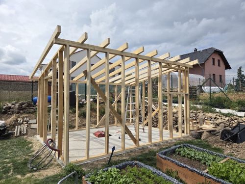 Zahájili jsme výstavbu dřevěného zahradního domku, který dodáváme na klíč. Součástí prací jsou základy, nosná konstrukce, opláštění, střešní krytina i finální fasáda. Domek bude sloužit jako praktické zázemí na soukromém pozemku. Průběh stavby pravidelně dokumentujeme a fotografie budeme průběžně doplňovat
